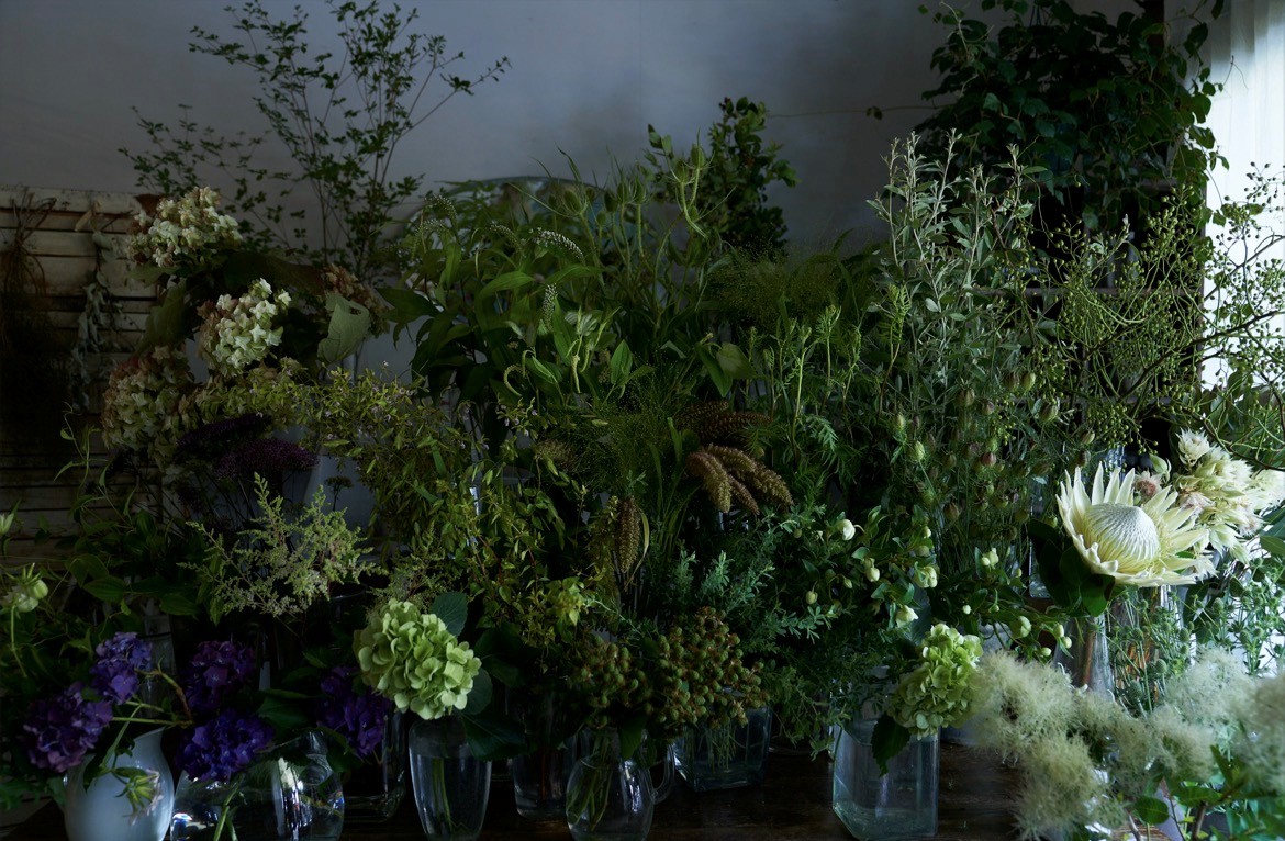 一般的な生花店ではなかなか見かけない珍しい品種や、野に咲くような自然な美しさを持つ枝物など、一輪飾るだけで空間の空気を変えてくれる花々が揃います。