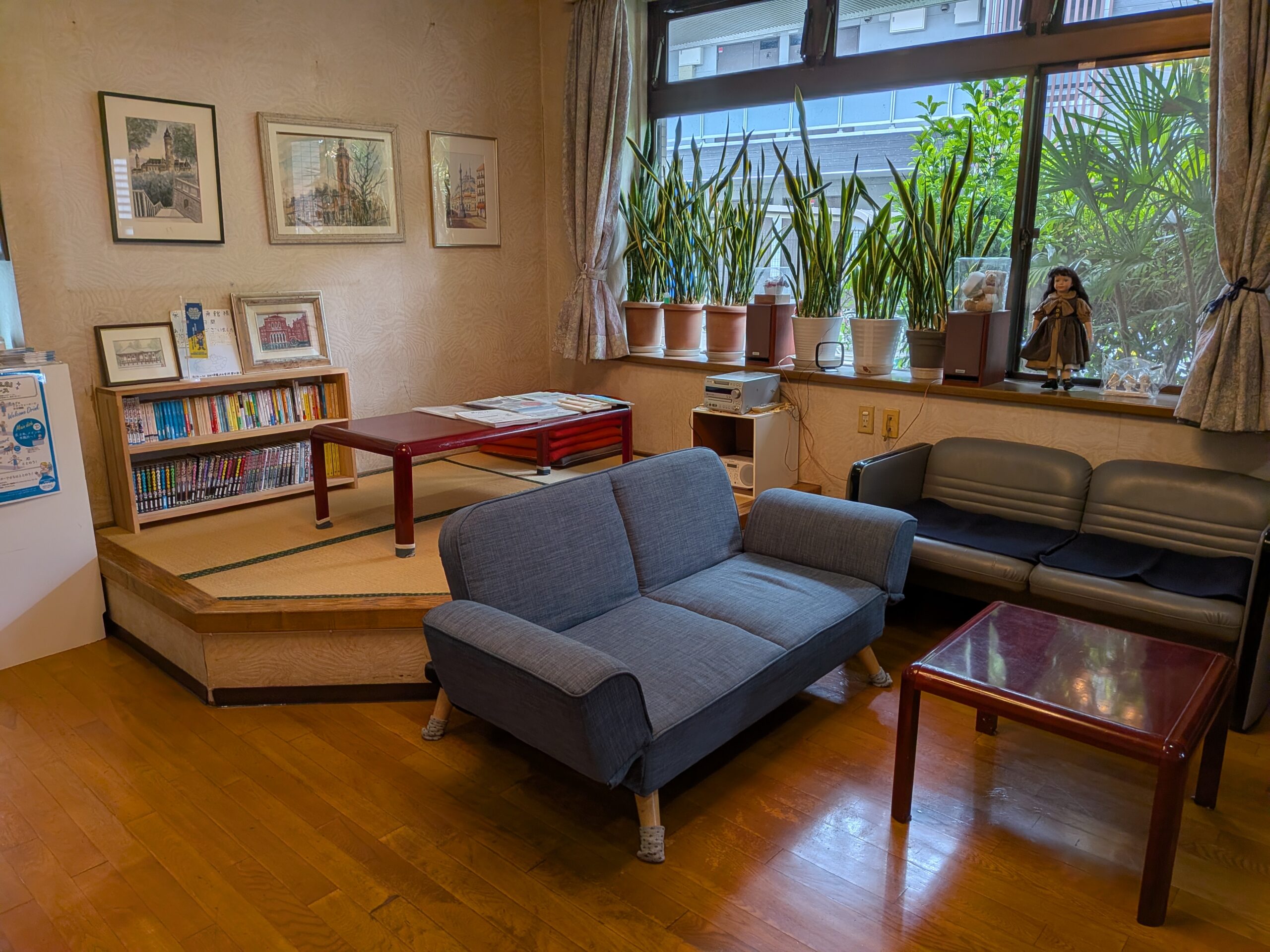 ロビーには休憩スペースがあり、番台のスタッフとの会話も楽しみの一つ。