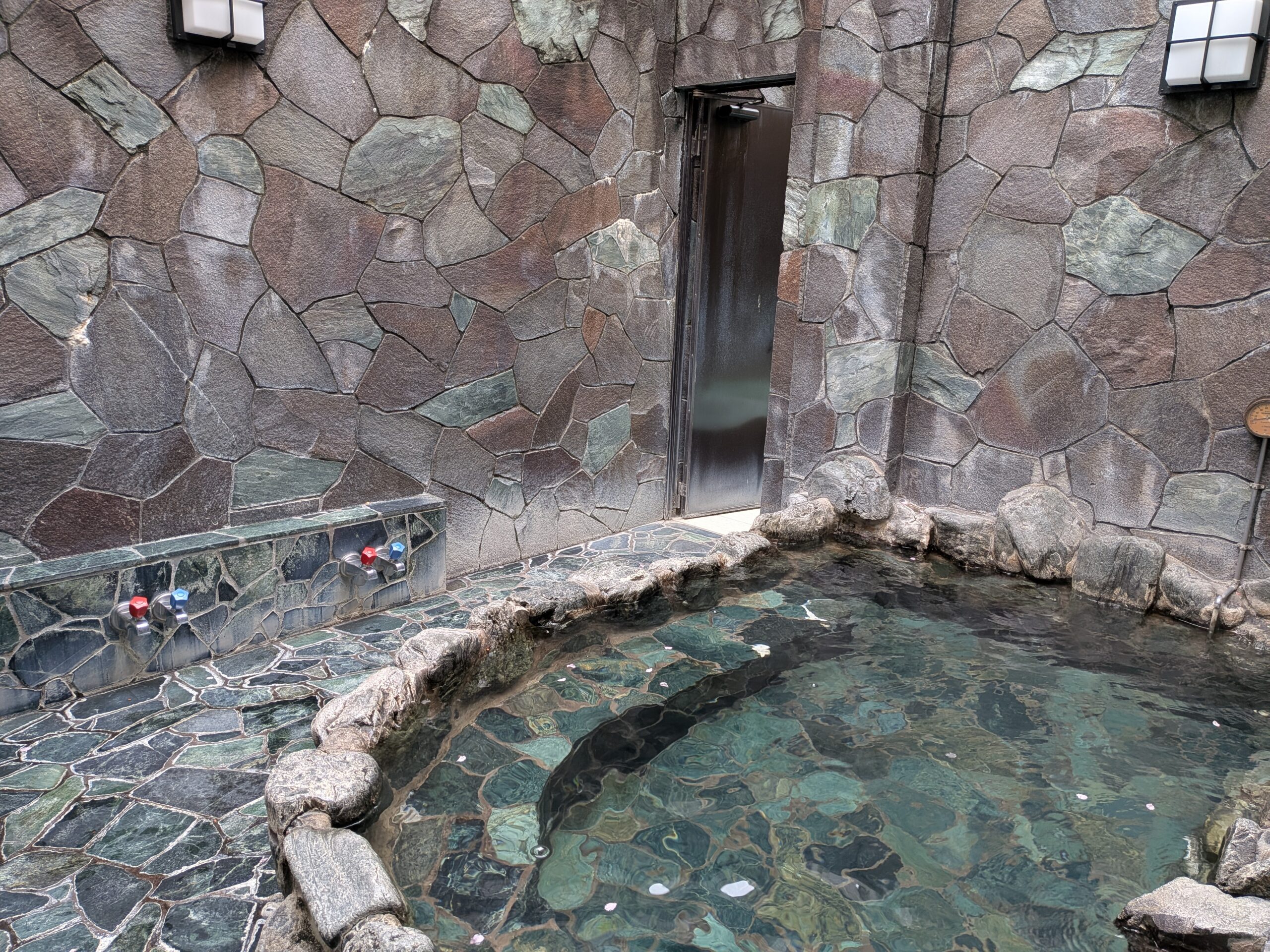 六会日大前駅から徒歩2分という好立地にありながら、本格的な露天岩風呂を楽しめます。