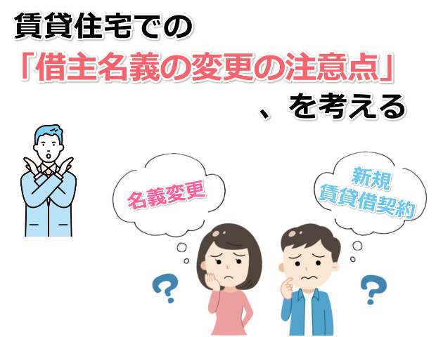しかし、同居する相手方の勤務先の家賃補助などの関係から相手方に名義を変更したい場合は、借主自体に変更が生じており、新たな借主の賃料の支払い能力などに関する審査を経るため、新規の賃貸借契約となります。