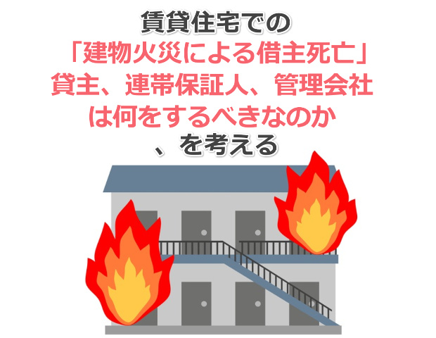 賃貸物件の「建物火災による借主死亡」貸主、連帯保証人、管理会社は何をするべきなのか、を考える