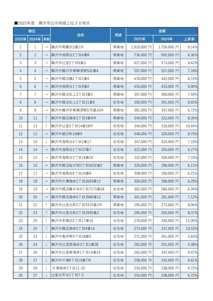 ■ 藤沢市の2025年度:公示地価・基準地価 上位30地点