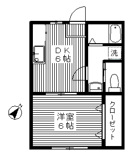トイレ・バスは別室タイプ、洗面所は独立タイプの1DKのお部屋です。