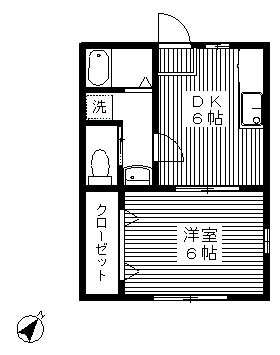 トイレ・バスは別室タイプ、洗面所は独立タイプの1DKのお部屋です。