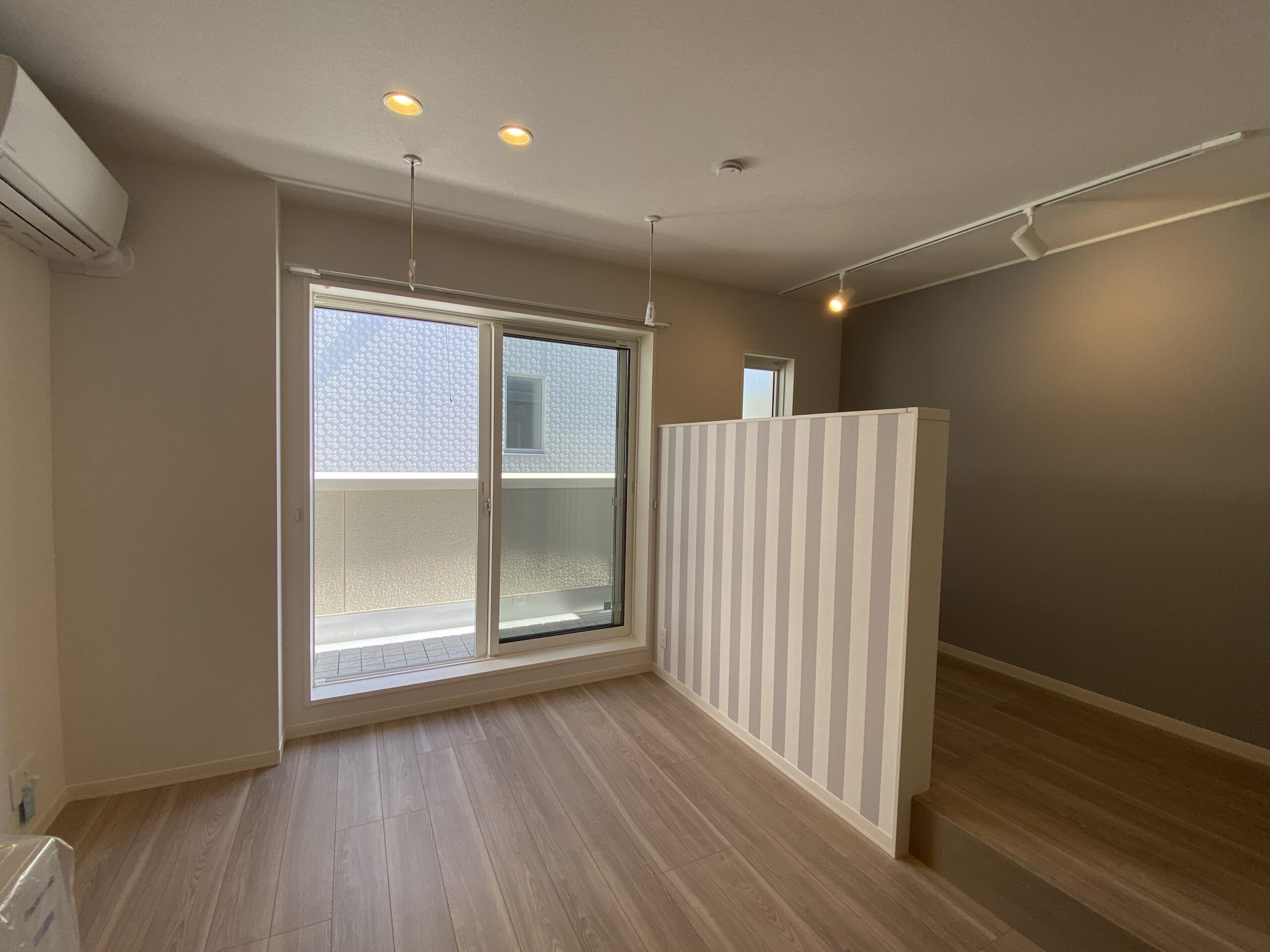 洋室の一部にベッドルーム(天井までない仕切り壁を設置)を造ることにより睡眠をとる空間とくつろげる空間とに分けました。