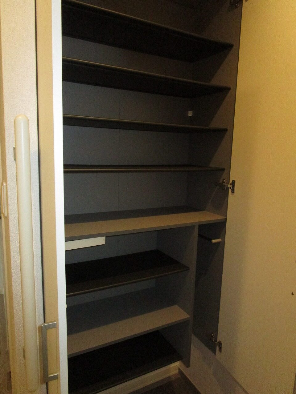フローリング調CF、ウォークインクローゼット、バス・トイレ別、浴室(冷暖房乾燥機能付)、トイレ(ウォッシュレット便座)、独立洗面所、2口コンロ、冷蔵庫・冷凍庫・電子レンジ置場、エアコン、シューズボックス、室内洗濯機置き場、雨戸