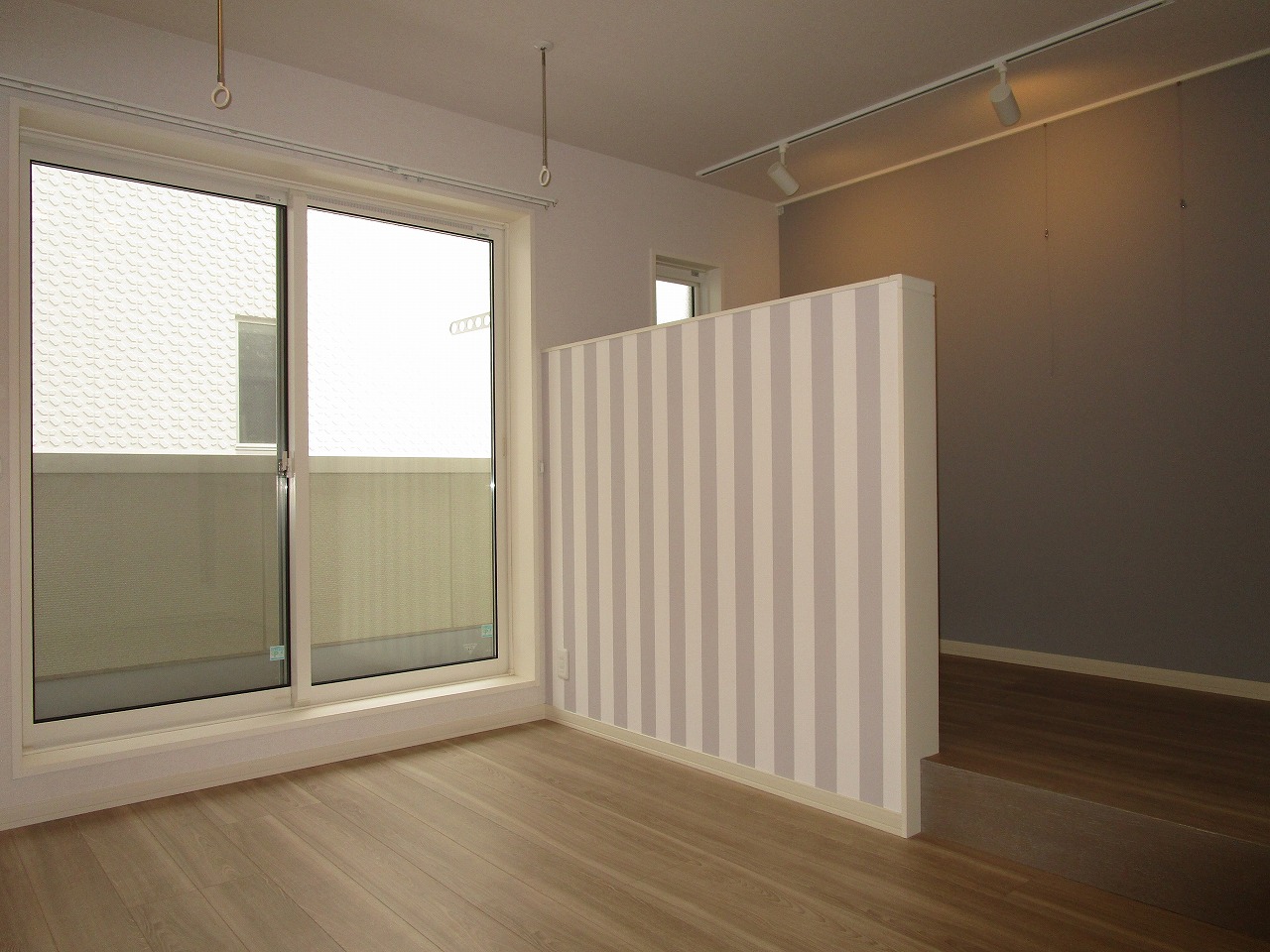 洋室の一部にベッドルーム(天井までない仕切り壁を設置)を造ることにより睡眠をとる空間とくつろげる空間とに分けました。