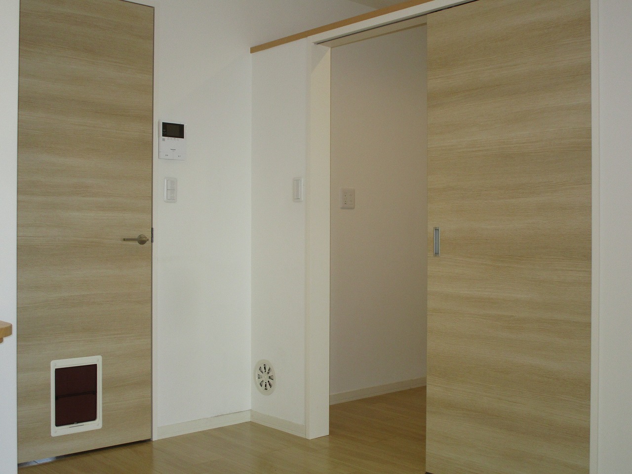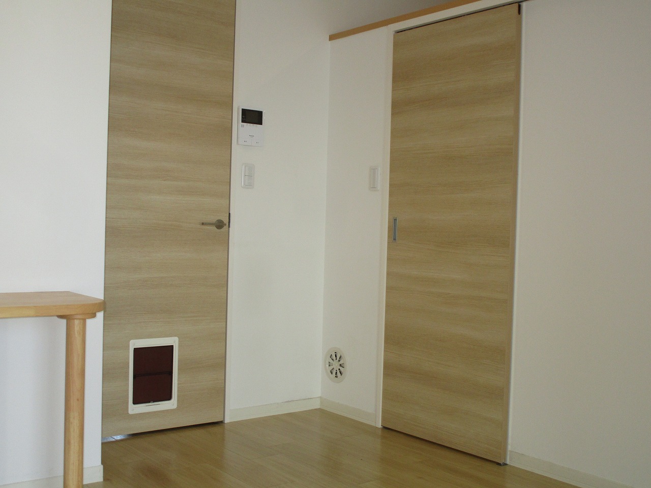 室内に猫ちゃん脱走防止のドアを設置できなかったため、エントランス(メイン・サブ共に)にはオートロック(テレビモニター付き)を設置しました。