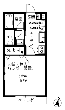 学生向けの、洋室8帖のアパートです。